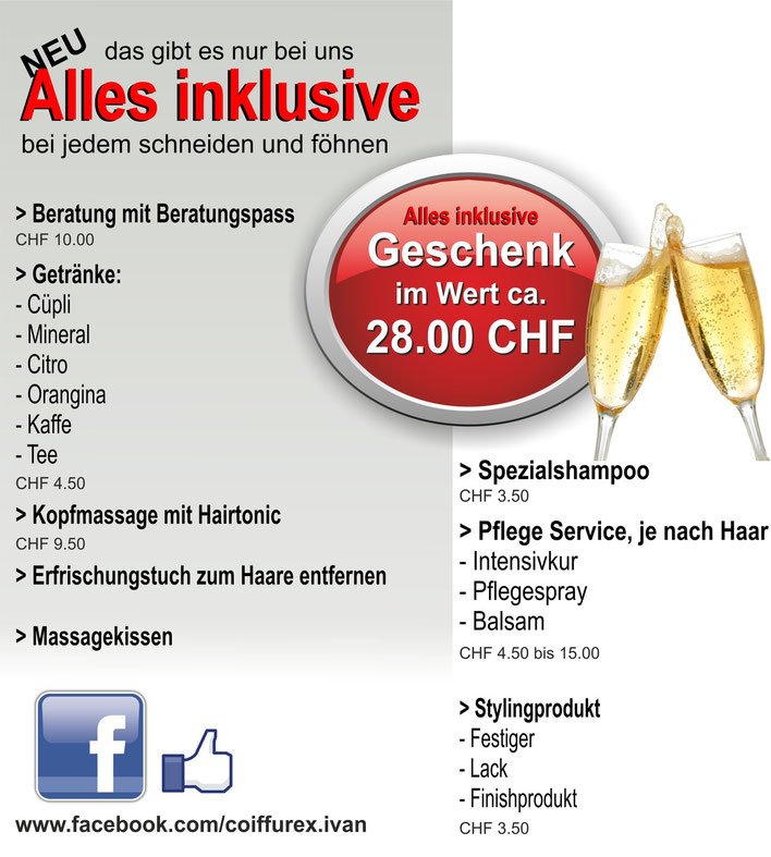 «Wir sind kein 08/15-Coiffeursalon. Unser Ziel ist es, aus dem Gewöhnlichen etwas ungewöhnliches zu machen», sagt Ivan Herb, Inhaber von Coiffure X. Sein Team, bestehend aus sechs Mitarbeitern und drei Lernenden, sorgt stets für das Wohl der Kundenschaft. So gehört zu jedem Coiffeurbesuch die kompetente Beratung, ein Getränk nach Wahl und eine Kopfmassage dazu. Und dies gratis. Ebenfalls kostenlos ist die Behandlung des Haares mit Intensivkuren, Pflegesprays oder Balsamen. Regelmässige Kunden können zusätzlich mit dem Treuekärtli sparen.
